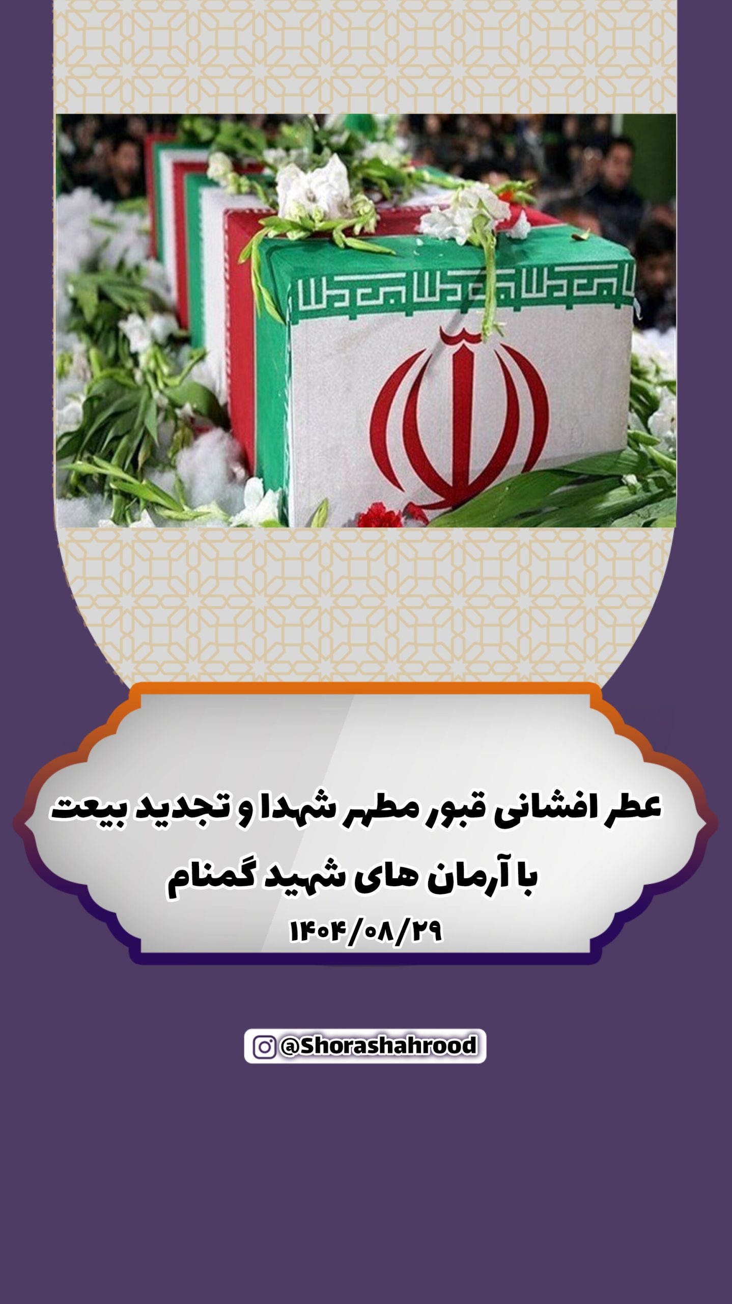 با حضور پیکر مطهر شهید والامقام گمنام،خانوادههای معظم شهدا، مردم ولایتمدار شاهرود و مسولین محلی و شهری گلزار شهدای شاهرود عطرافشانی و غبار روبی شد