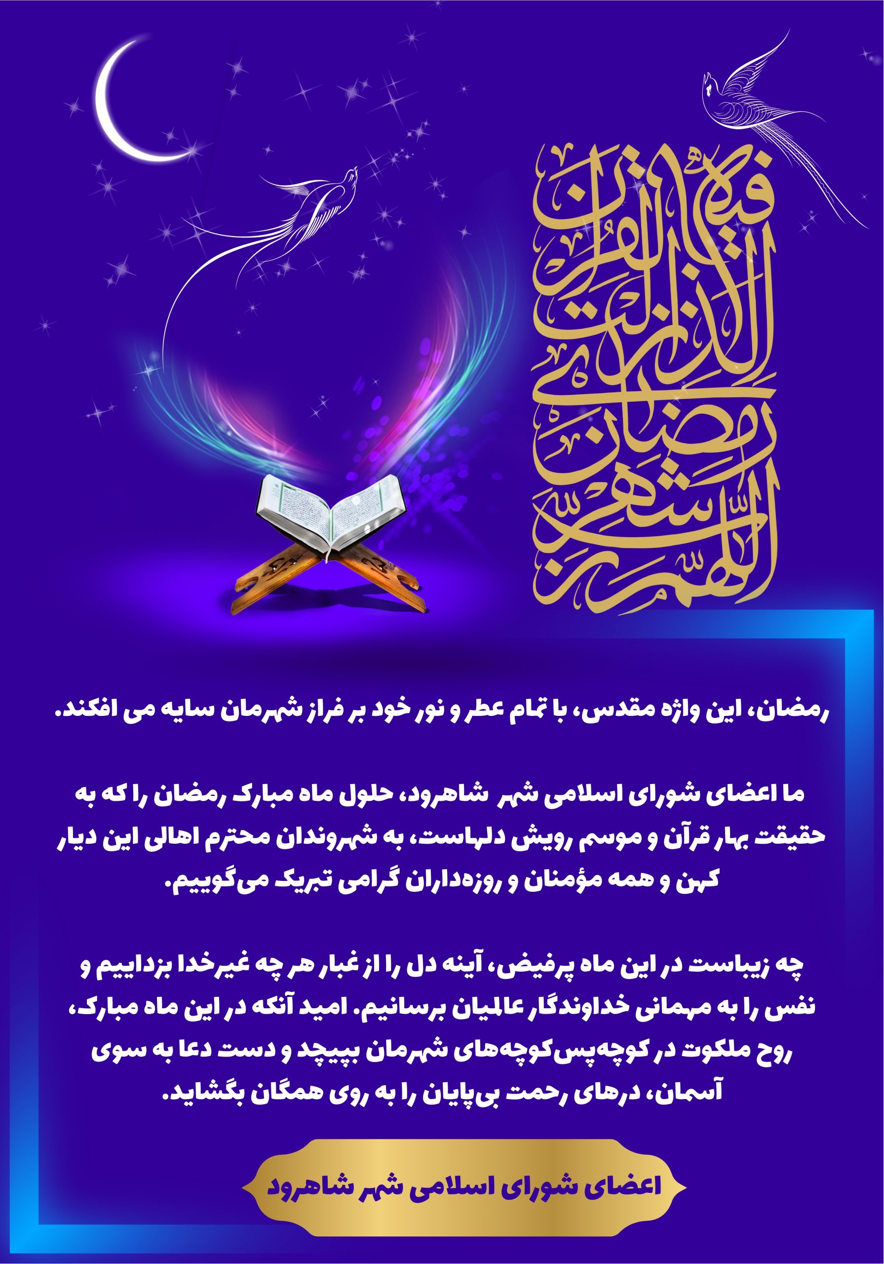 پیام اعضای شورای اسلامی شهر شاهرود به مناسبت حلول ماه مبارک رمضان روابط عمومی مدیریت شهری شاهرود