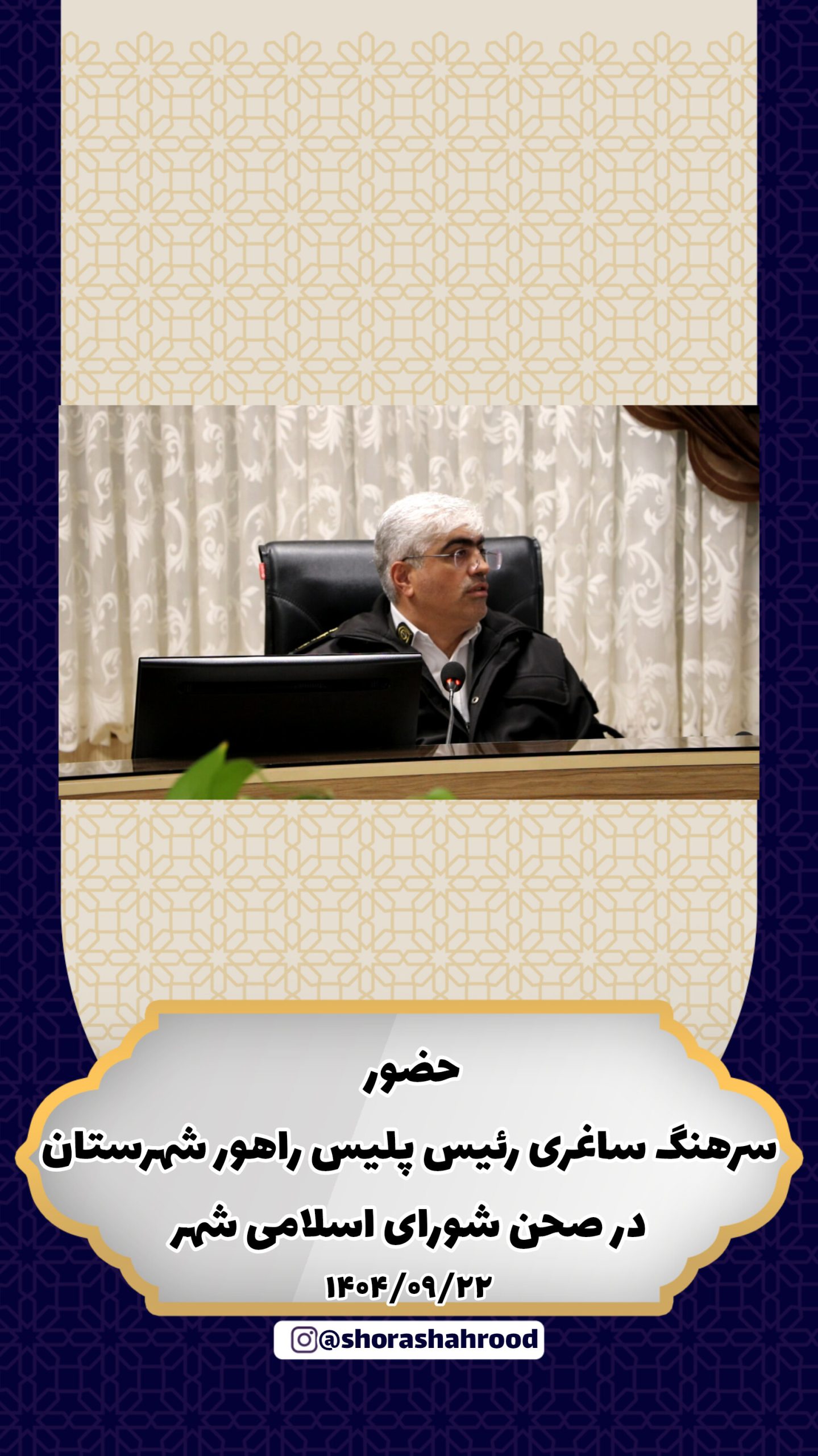 حضور سرهنگ ساغری رییس پلیس راهور شهرستان در صحن شورای اسلامی شهر و بررسی موضوعات ترافیکی شهر