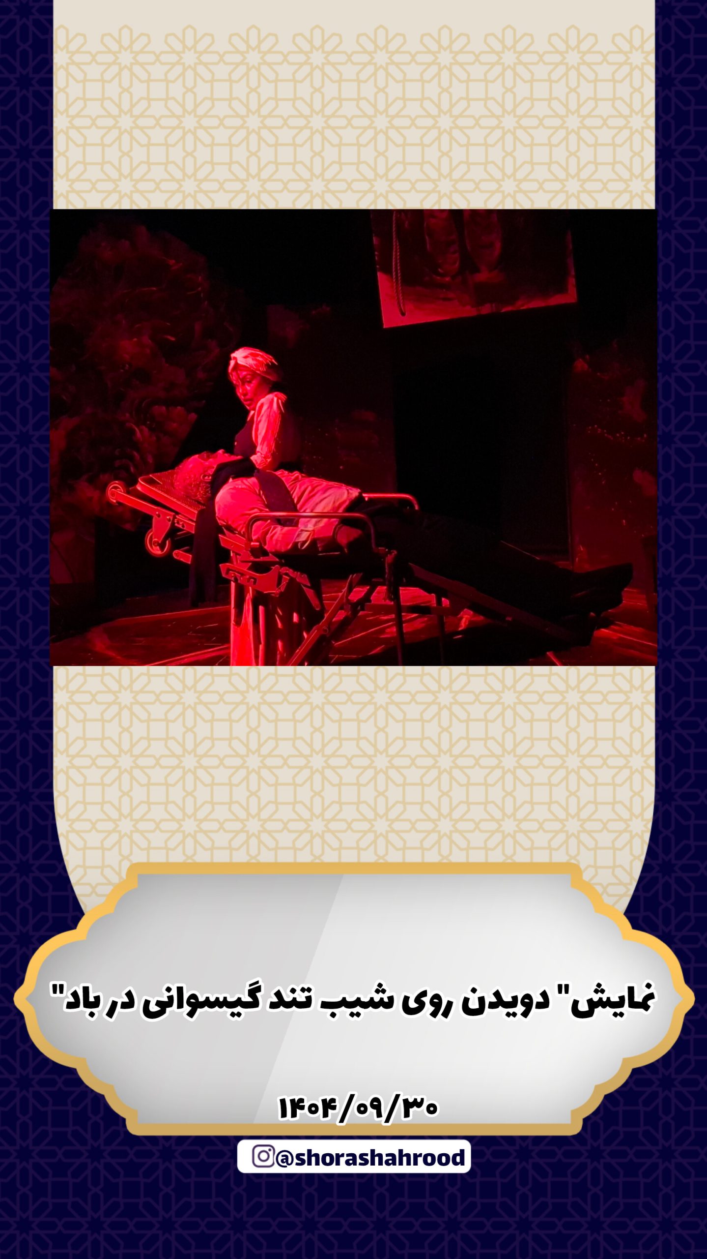 محمدرضا یونسیان رئیس شورای اسلامی شهر شاهرود نمایش “دویدن روی شیب تند گیسوانی در باد” را در تماشاخانه هفت رنگ اداره ارشاد به تماشا نشست 📆یک شنبه ۱۴۰۴/۰۹/۳۰ 🎙روابط عمومی…