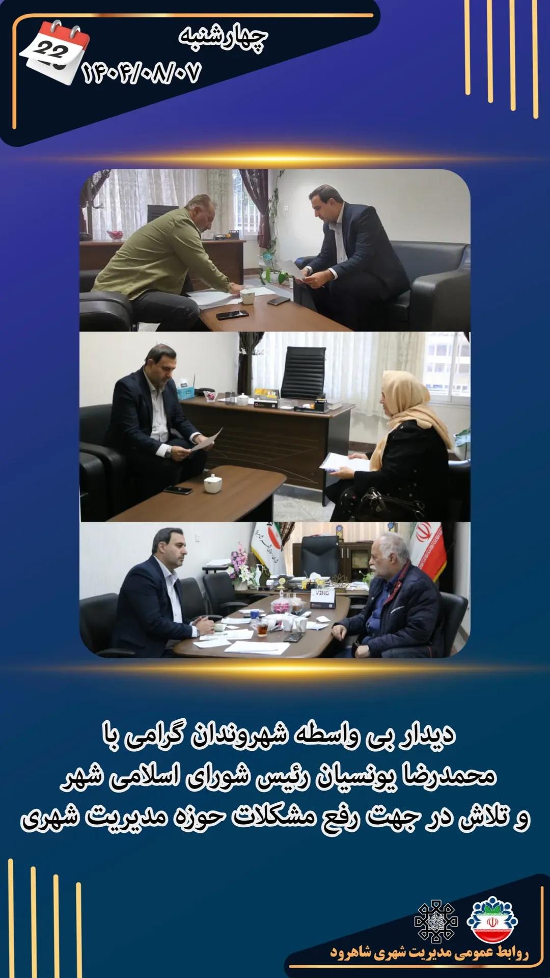 دیدار بی واسطه شهروندان گرامی با محمدرضا یونسیان رئیس شورای اسلامی شهر و تلاش در جهت رفع مشکلات حوزه مدیریت شهری
